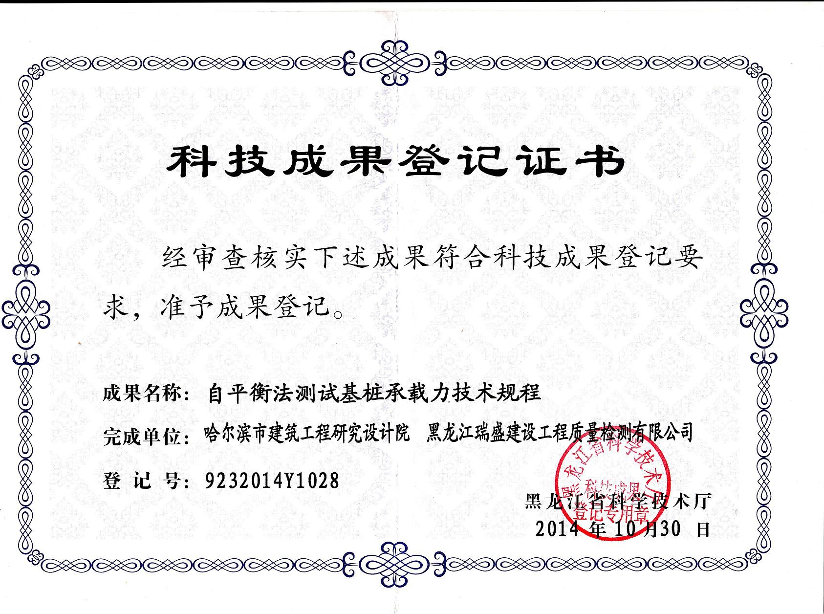 自平衡法測(cè)試成果證書(shū)